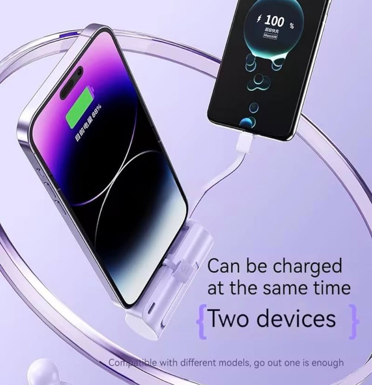 Il caricatore 2-in-1 è progettato per offrire comodità: integra un cavo di ricarica e una power bank compatta, ideale per chi è sempre in movimento. Puoi ricaricare due dispositivi contemporaneamente grazie alle uscite USB-C e Lightning, mantenendo il tuo spazio ordinato e senza ingombri di cavi.