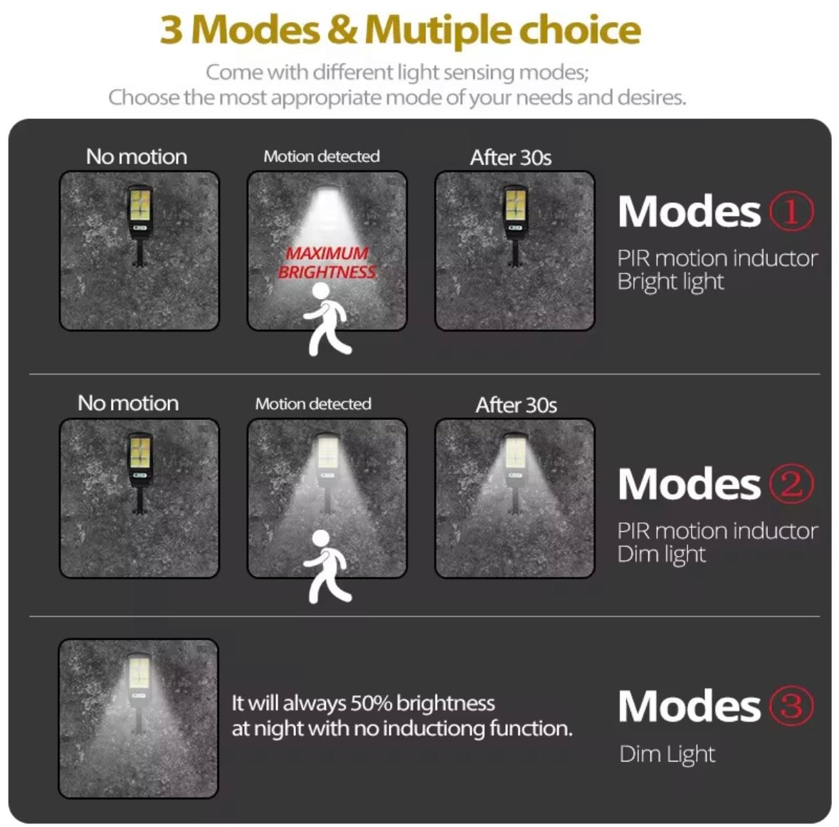 La luce solare da giardino è resistente alle intemperie, perfetta per giardini, cortili, terrazze, ingressi, garage, balconi e vialetti. Con il telecomando incluso puoi regolare facilmente le modalità di illuminazione, scegliere tra luce continua, luce a sensore o modalità di risparmio energetico, e persino attivare la funzione SOS in caso di emergenza.