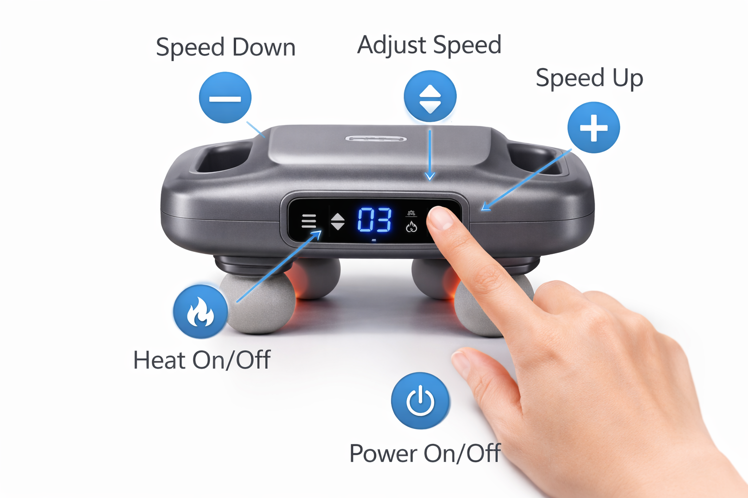 Grazie ai comandi intuitivi è possibile regolare l’intensità del massaggio in base alle proprie esigenze, rendendolo adatto sia a un massaggio delicato che più profondo.