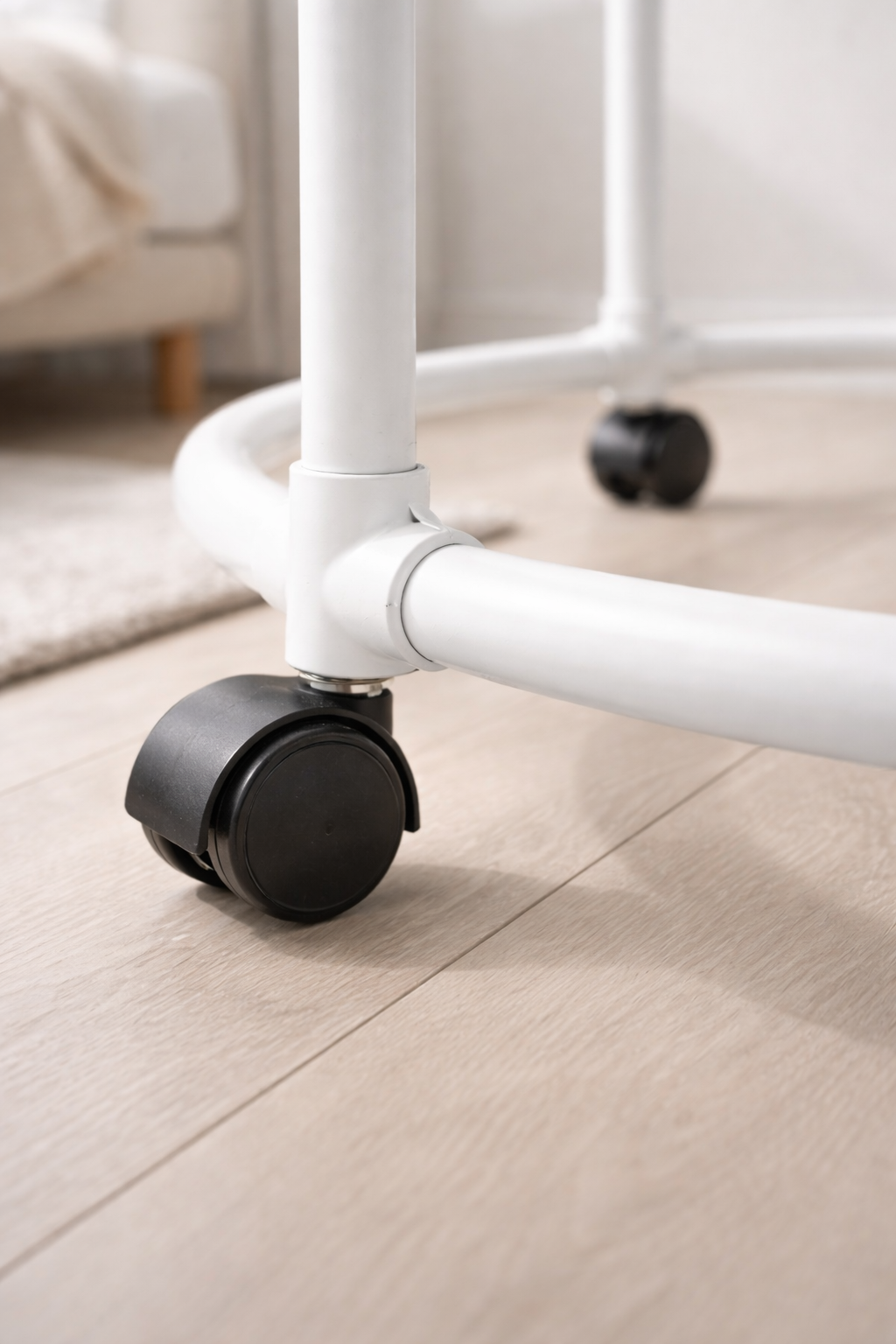 Dotato di ruote girevoli, il supporto appendiabiti può essere spostato facilmente da una stanza all’altra. Perfetto per pulire casa o riorganizzare gli spazi.