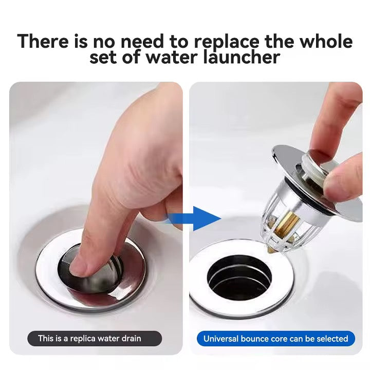 Rinnova il tuo lavandino in pochi secondi con il nostro Tappo di Scarico Universale a Pressione. Dimentica i vecchi tappi a leva difficili da pulire o quelli in gomma che perdono acqua. Questo innovativo nucleo "bounce" (a molla) ti permette di sigillare o svuotare il lavabo con un semplice tocco.
