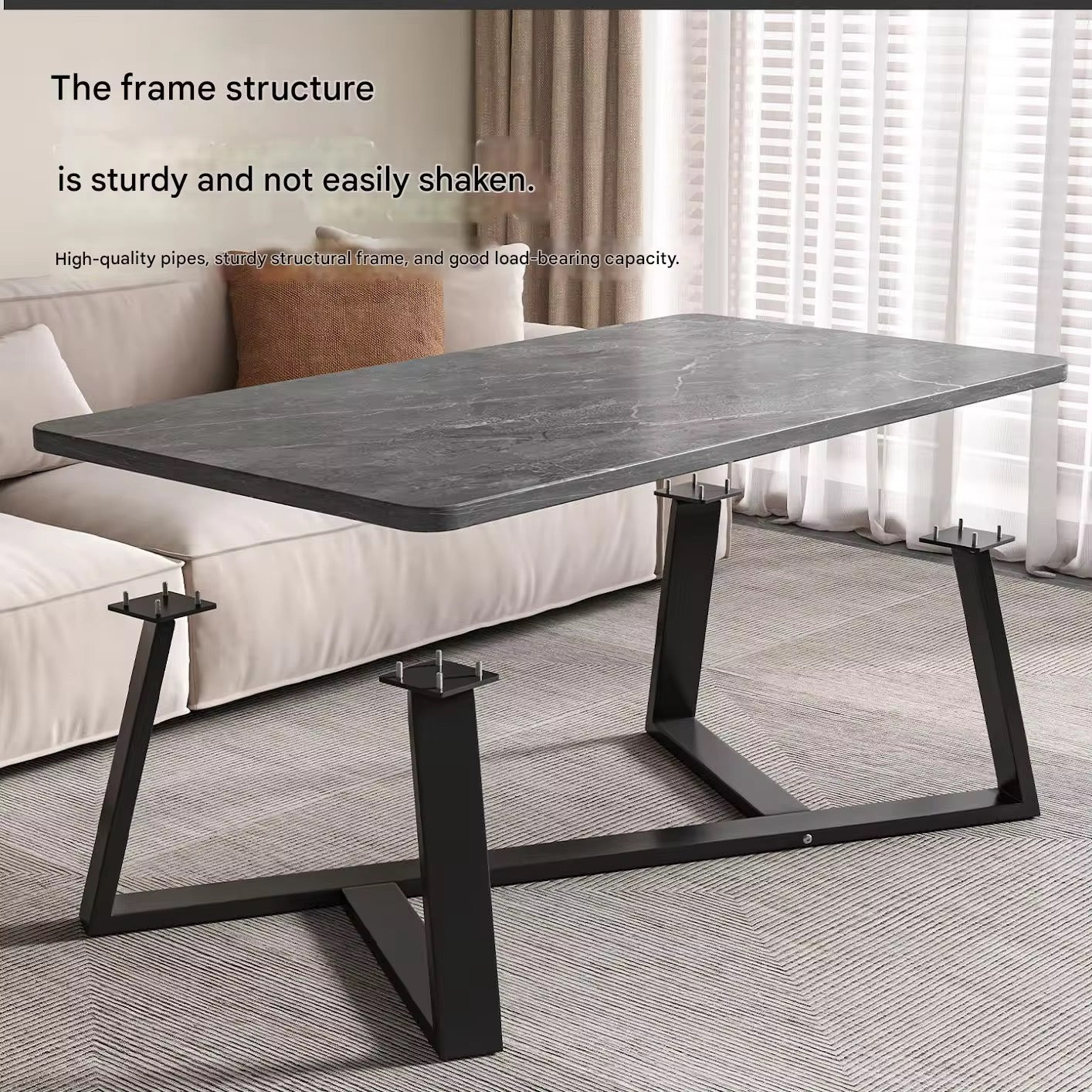 • Struttura Ultra-Stabile: La base è composta da un telaio in acciaio nero opaco con gambe a forma di "Y" rovesciata, progettato per garantire la massima stabilità e prevenire qualsiasi oscillazione.