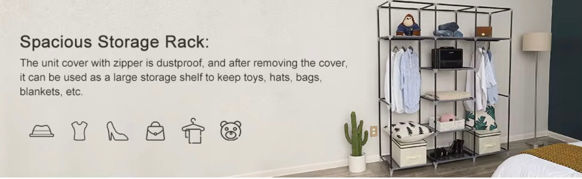 • Struttura Robusta e Leggera: Costruito con tubi metallici resistenti e connettori in plastica, l'armadio garantisce una buona stabilità e capacità di carico, pur rimanendo incredibilmente leggero e facile da spostare o trasportare (ottimo per traslochi).