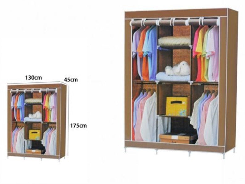 • Massima Protezione: La robusta copertura in tessuto non tessuto (TNT) di colore marrone o caffè protegge efficacemente i tuoi indumenti da polvere, sporco e umidità. La porta con cerniera (zip) permette di chiudere completamente l'armadio, mantenendo i tuoi capi al sicuro e invisibili.